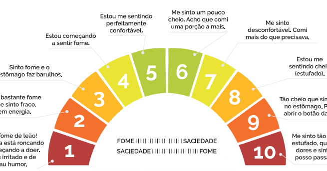 Seu objetivo é explicar os conceitos da fome e saciedade que são inversamente proporcionais. Quando estamos com 0 de fome, nossa saciedade se aproxima de 10 e vice-versa.